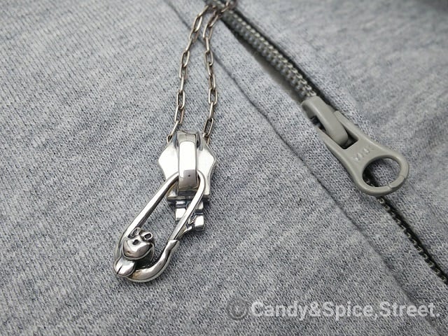 スライダー部分がバチカンになっていて、チェーンを通すとエレメントが開いた状態のジッパーを表現しています☆