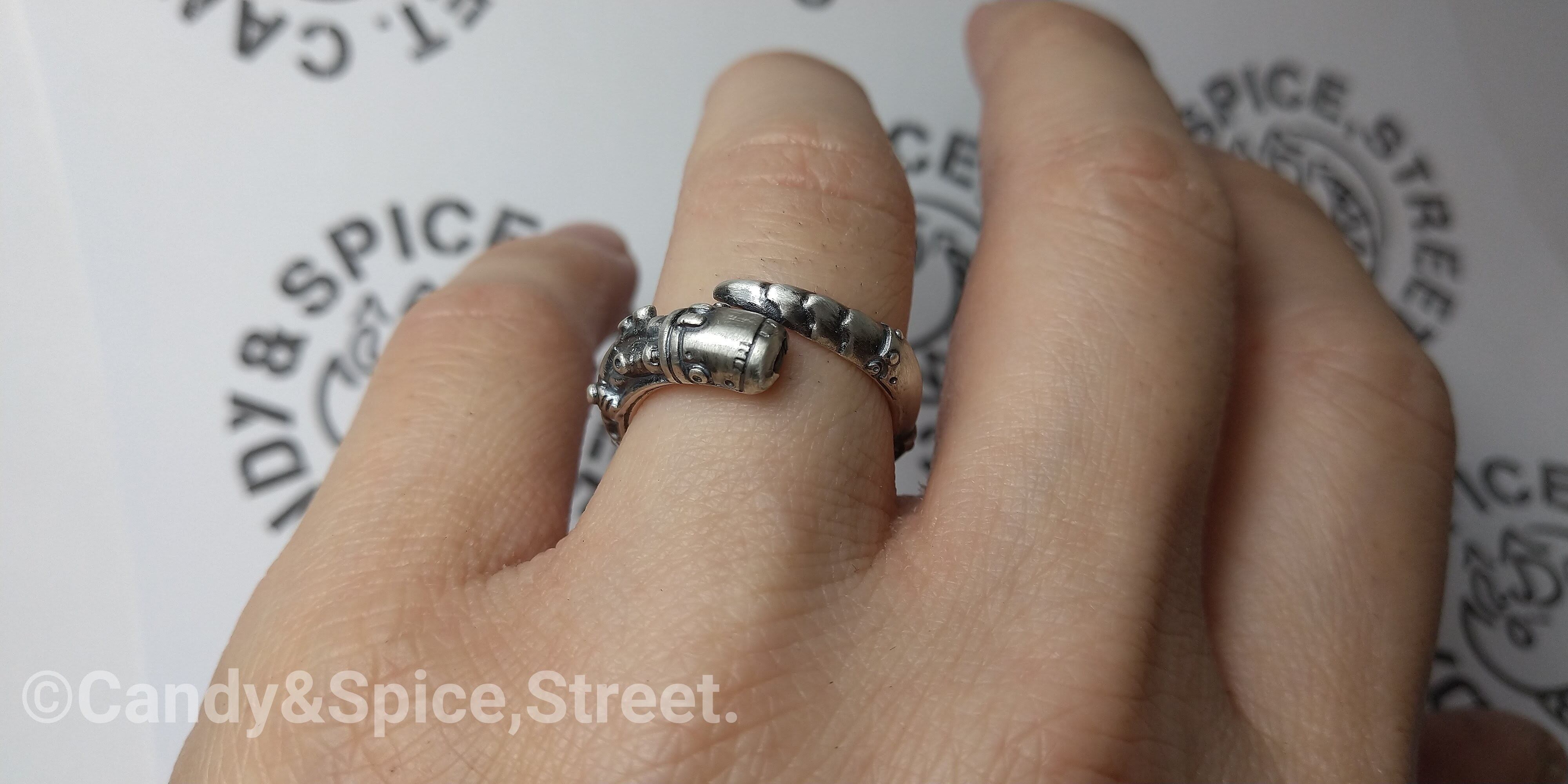 メカニカルなデザインを施し指に巻き付く感じが、どこか可愛くて愛おしく