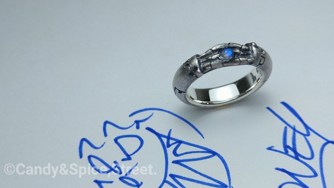 人差し指にインデックスリングとして、小指にピンキーリングとしても存在感を出してくれるシルバーリングに仕上げました。