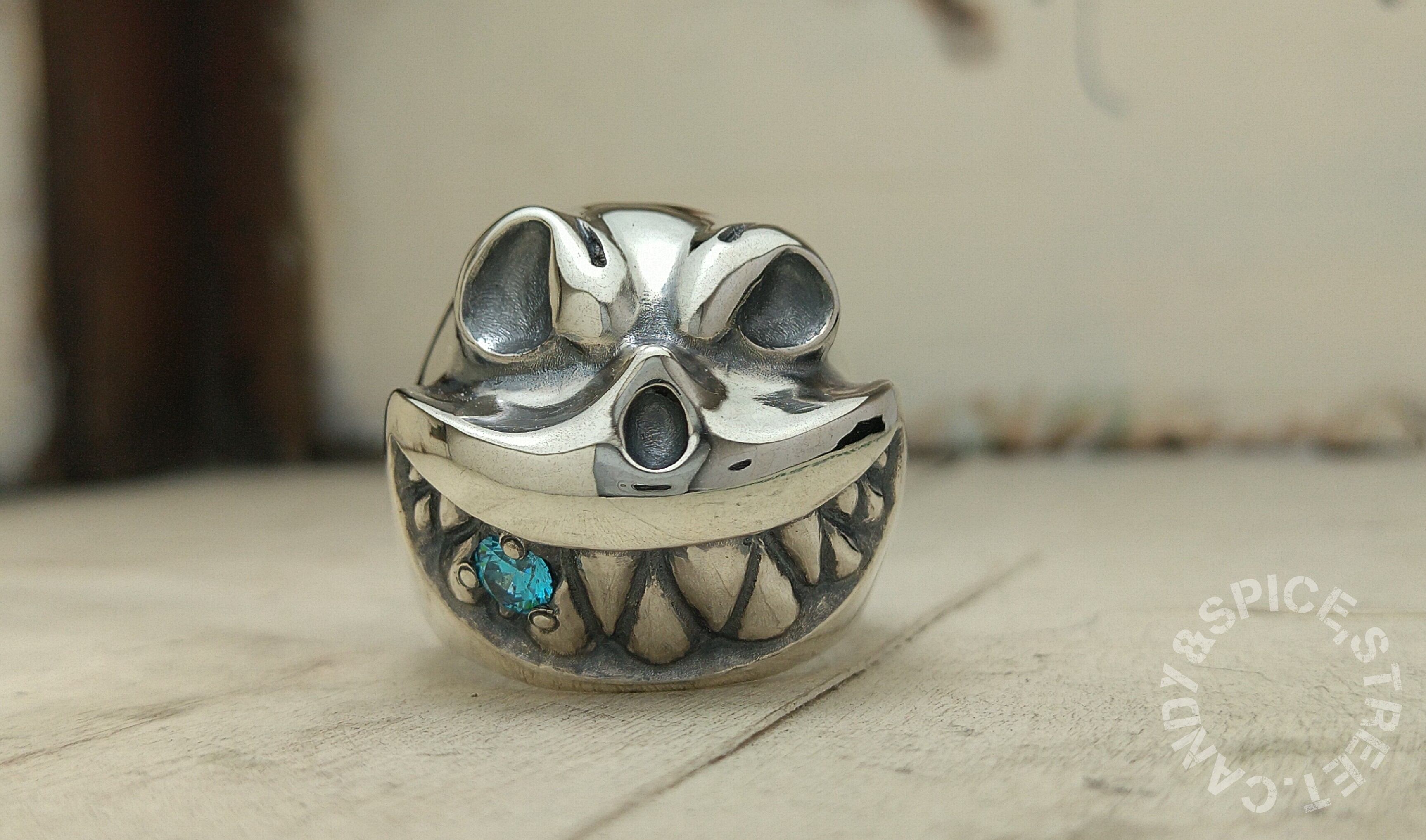 The subtle changes in expression, which change depending on the angle from happy to angry, as she bites the gemstone, are sure to become addictive! This silver ring is